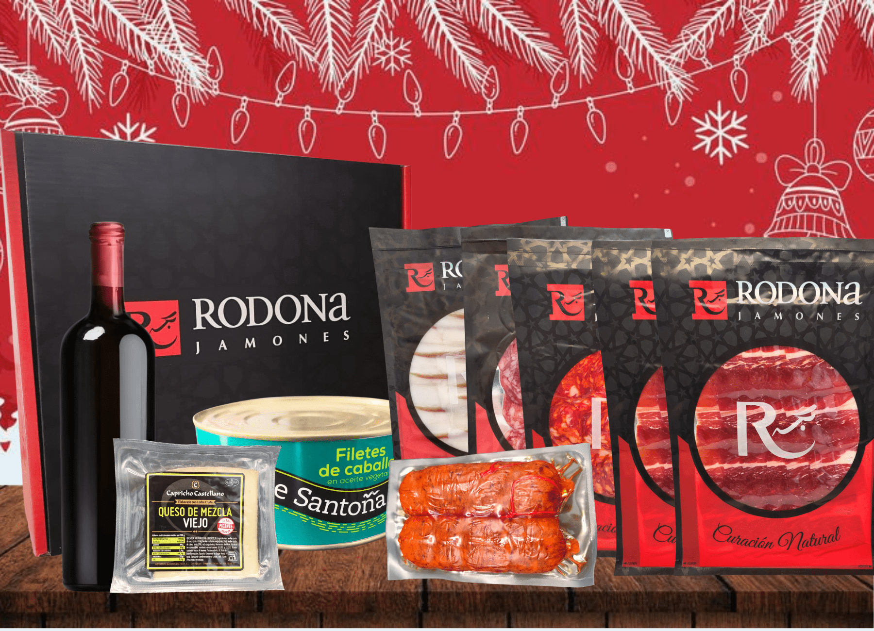 Selección elaborada por Jamones Rodona con productos de máxima calidad: embutidos, quesos y vino seleccionados. Perfecto como regalo gourmet para empresas, familia o amigos. Presentación cuidada y garantía de origen.