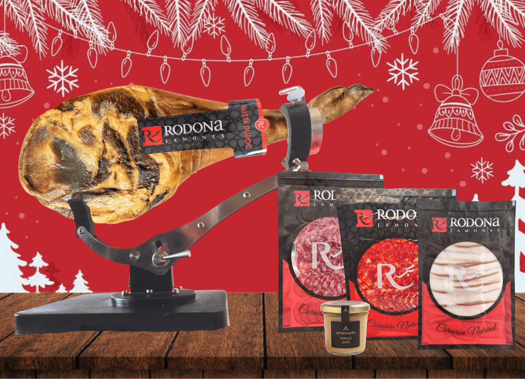 Lote 4 Jamones Rodona: paleta duroc y embutidos ibéricos gourmet.
